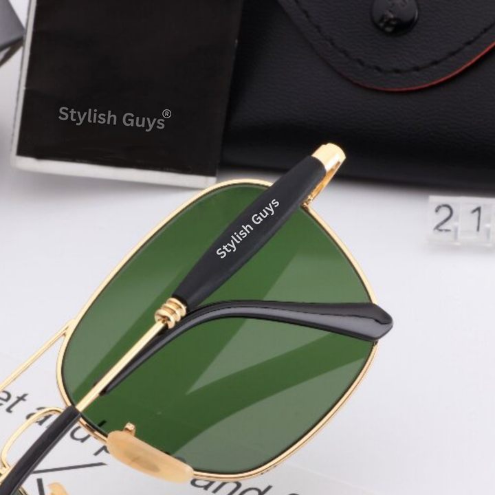 Top Trendy Hot New Stylish Attractive Green & Golden 1208 Evergreen UV Protected Square Aviator Sunglasses For King's Men & Women