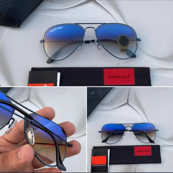 New Fancy Latest Flexible Nosed Trending Shaded Blue Shade Mirror & Black Frame Aviator With Metal Frame Hot Favourite Sunglass For Men, Women & Unisex. ( SG - 3026 )