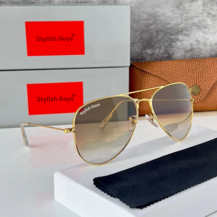 New Fancy Latest Flexible Nosed Trending Shaded Brown Shade Mirror & Golden Frame Aviator With Metal Frame Hot Favourite Sunglass For Men, Women & Unisex. ( SG - 3026 )