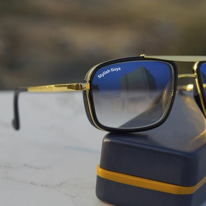 Top Trendy Hot New Stylish Attractive Blue Shade & Golden 4413 Evergreen UV Protected Sunglasses For King's Men & Women